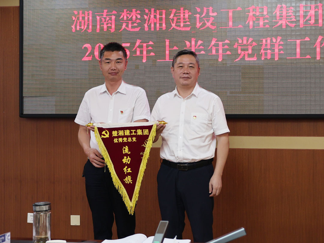 會議還表彰了在二季度黨建和思想政治工作目標管理考核中榮膺“優秀黨總支”的礦山黨總支,并頒授了流動紅旗。