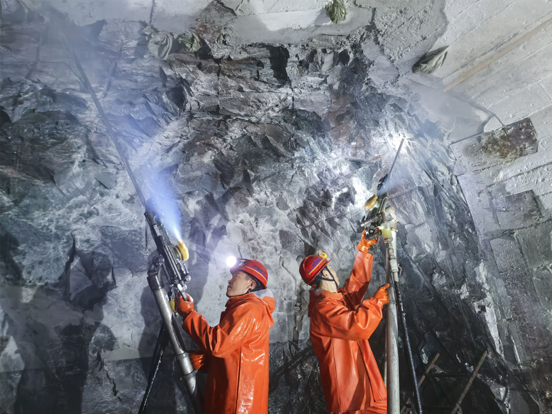更值得一提的是,在副井施工抵達-350米標高節點時,意外遭遇250m3/h的集中涌水,常規解決方案均無法有效控制,工程一度陷入停滯。面對困境,項目總指揮楊勇帶領技術團隊迅速調整思路、聚力攻關,不僅創新性采用化學漿注漿技術,更以“連軸轉”的拼勁堅守現場,項目團隊連續72小時輪班值守,每小時精準記錄一次注漿數據,最終僅用3天實現高效封堵涌水,為項目推進掃清了關鍵障礙。公司以湖北祥云高烽磷礦項目施工為原型,總結形成了“超大涌水磷礦豎井注漿堵水工法”,不僅斬獲湖南省科學技術進步二等獎,更成功申報省部級施工工法,為同類礦山施工提供了可復制的“楚湘方案”。